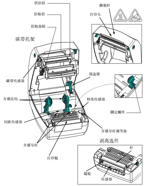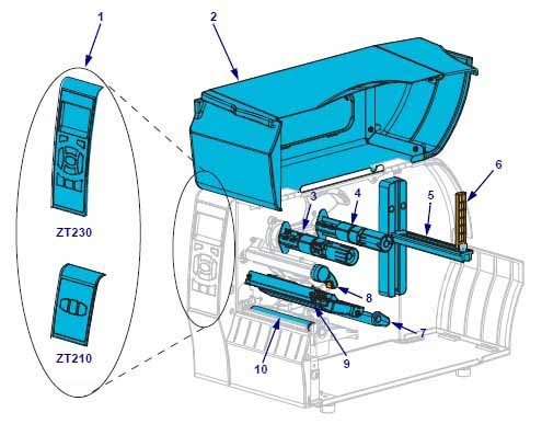 | 3 | ribbon pickup axis | 8 | Print head opening lever |