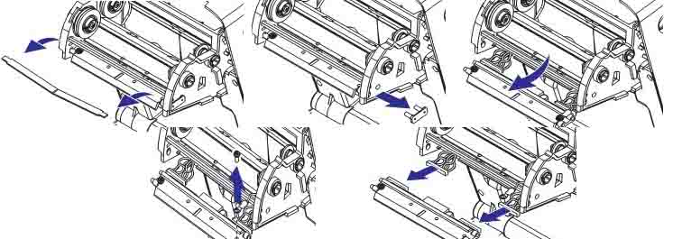 Printhead, Method: 95% alcohol solvent, Time Interval: After using one roll of media for thermal mode, after using a perfect ribbon for thermal transfer or after every three rolls of media.